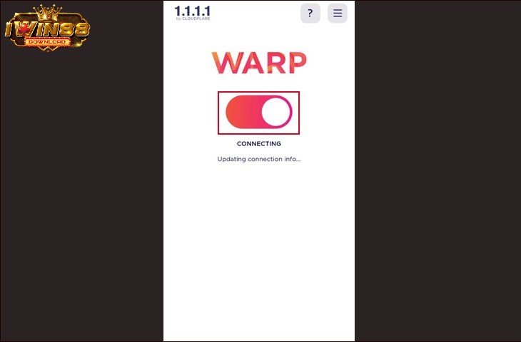 Bước 3: Tại màn hình hiển thị của ứng dụng, người dùng chỉ cần gạt công tắc sang bên phải để WARP có thể thực hiện các chức năng của mình.